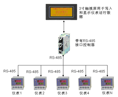 可編程控制器允許在一個(gè)RS-485通信接口上連接多達(dá)101臺(tái)[宇電]儀表,儀表大于60臺(tái)時(shí),需加一個(gè)RS-485中繼器,RS-485通信口通信距離長(zhǎng)達(dá)1KM以上。