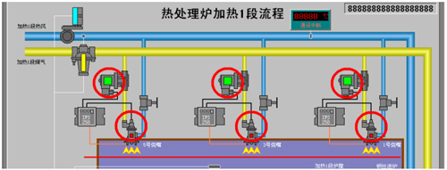 該熱處理加熱監(jiān)控系統(tǒng)使用了4臺AI-301ME5I5I5I5I5I5共37個I/O點,主要控制和檢測冷卻風機,加熱器,煤氣噴嘴電磁閥,進水電磁閥,煤氣濃度報警器等多個開關(guān)量輸入輸出設(shè)備。