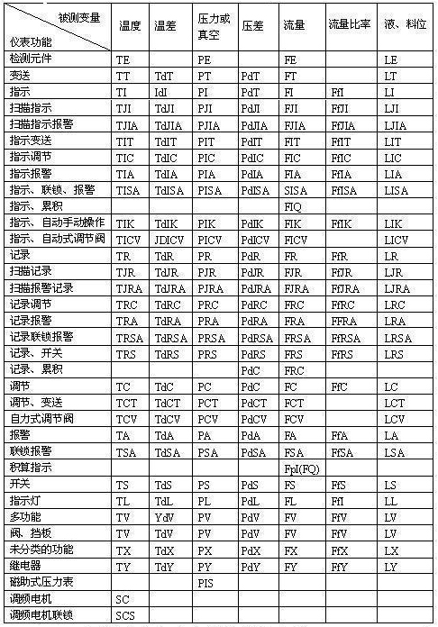 | 被測(cè)變量和儀表功能的字母代號(hào) |
