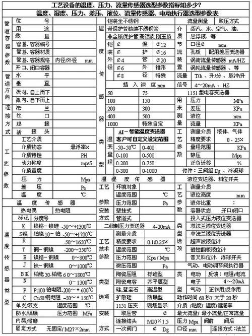 如選擇溫度傳感器時(shí),先要了解設(shè)備管道的結(jié)構(gòu),要考慮插入深度與物料的高度、流向、壓力、溫度范圍及要求反應(yīng)的速度。
